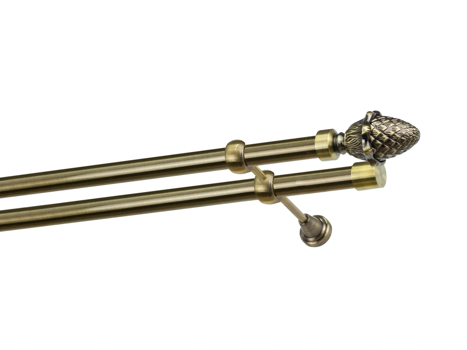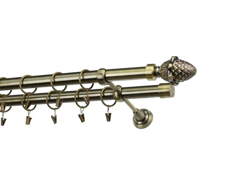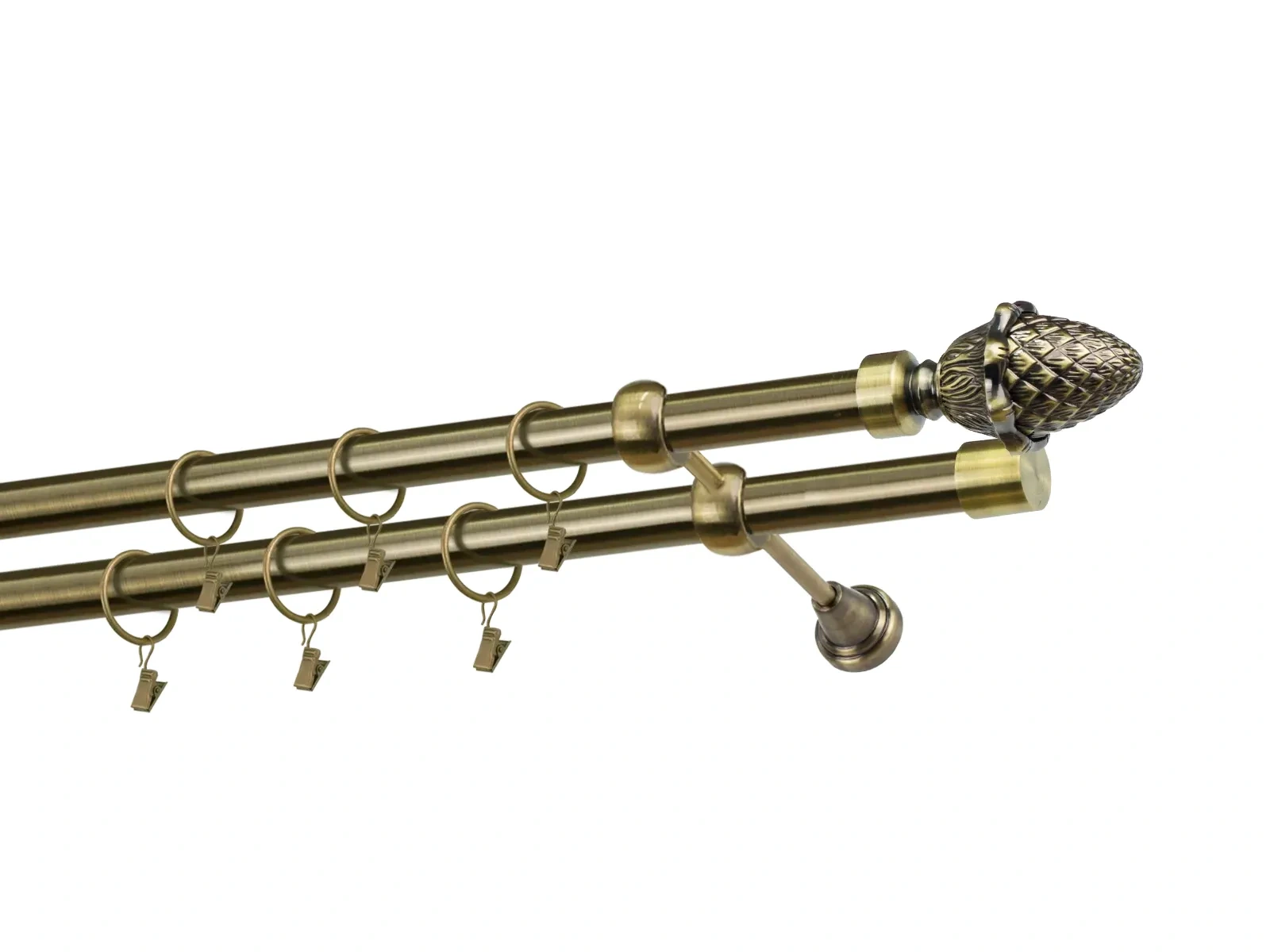 Dvouřadá garnýž s povrchovou úpravou - odstín antik (matné zlato). Celokovová garnýž s kvalitní povrchovou úpravou - galvanické pokovování. Galvanické pokovování zabezpečuje vyšší povrchovou tvrdost, zvýšenú dolnost vůči poškrábání, hladký povrch. Dodávané jsou v kompletech.