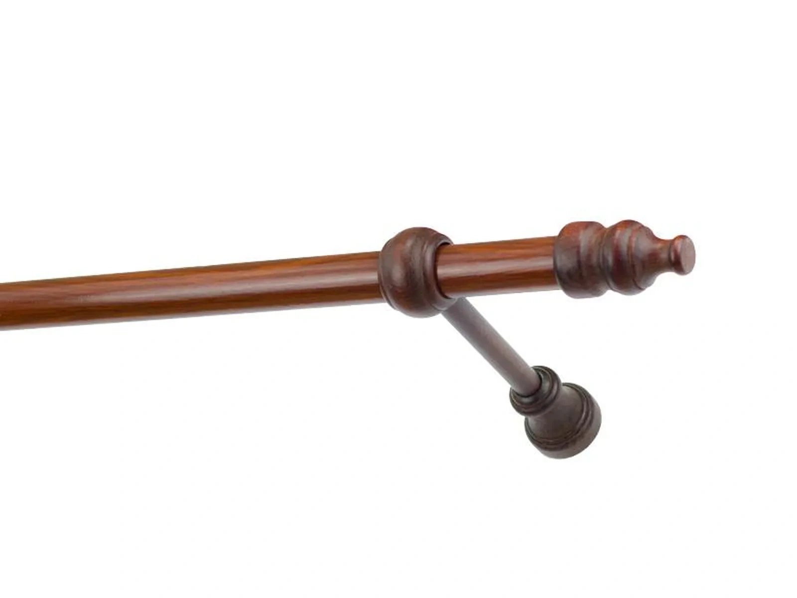 Koncovky, držáky a kroužky jsou dřěvené. Tyč je dřěvená (vyráběná technológii jako europrofily pro okna - co eliminuje ohýbaní vlyvem tepla) a je potažena odolnou dřevoimitační fólií. Dodávané jsou v kompletech.
