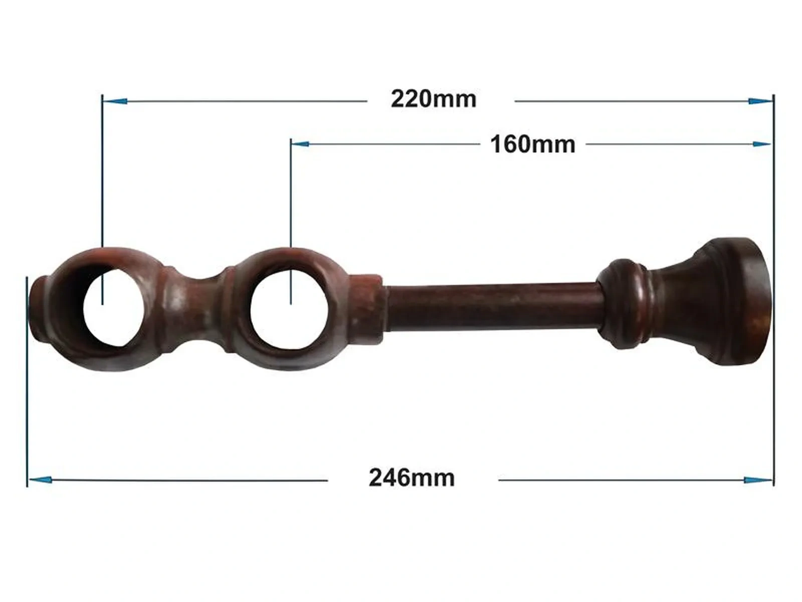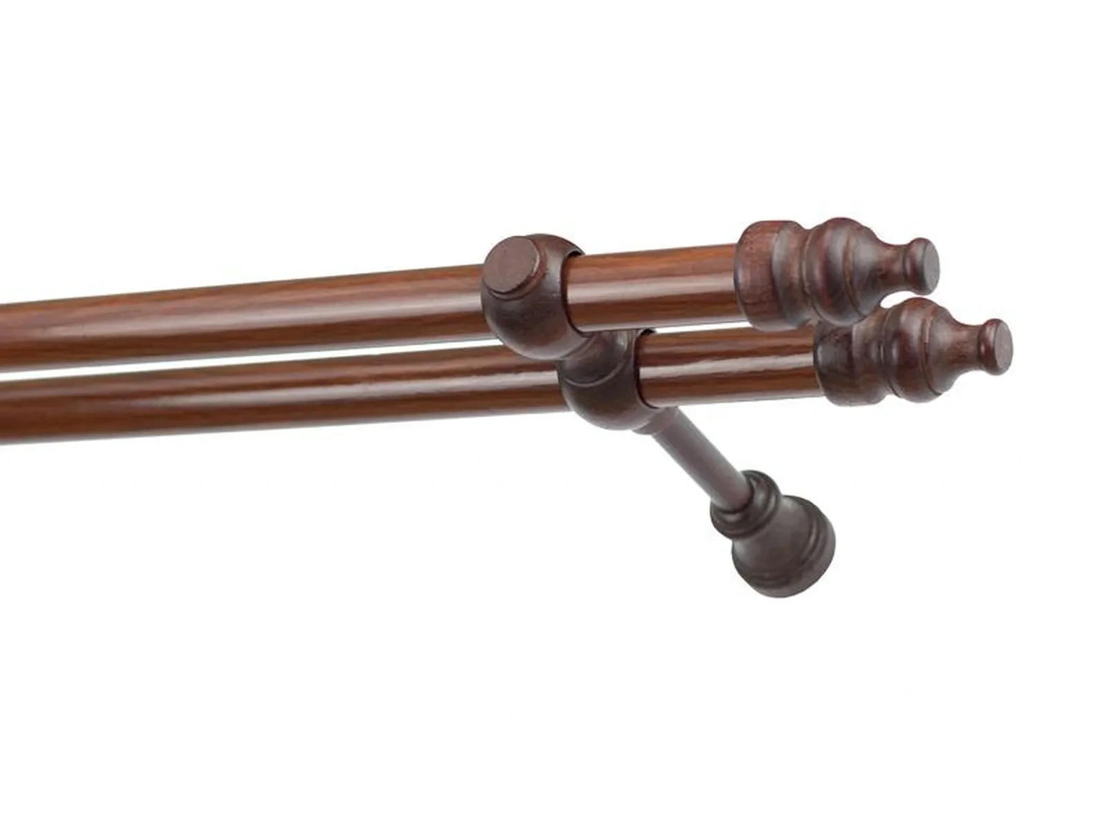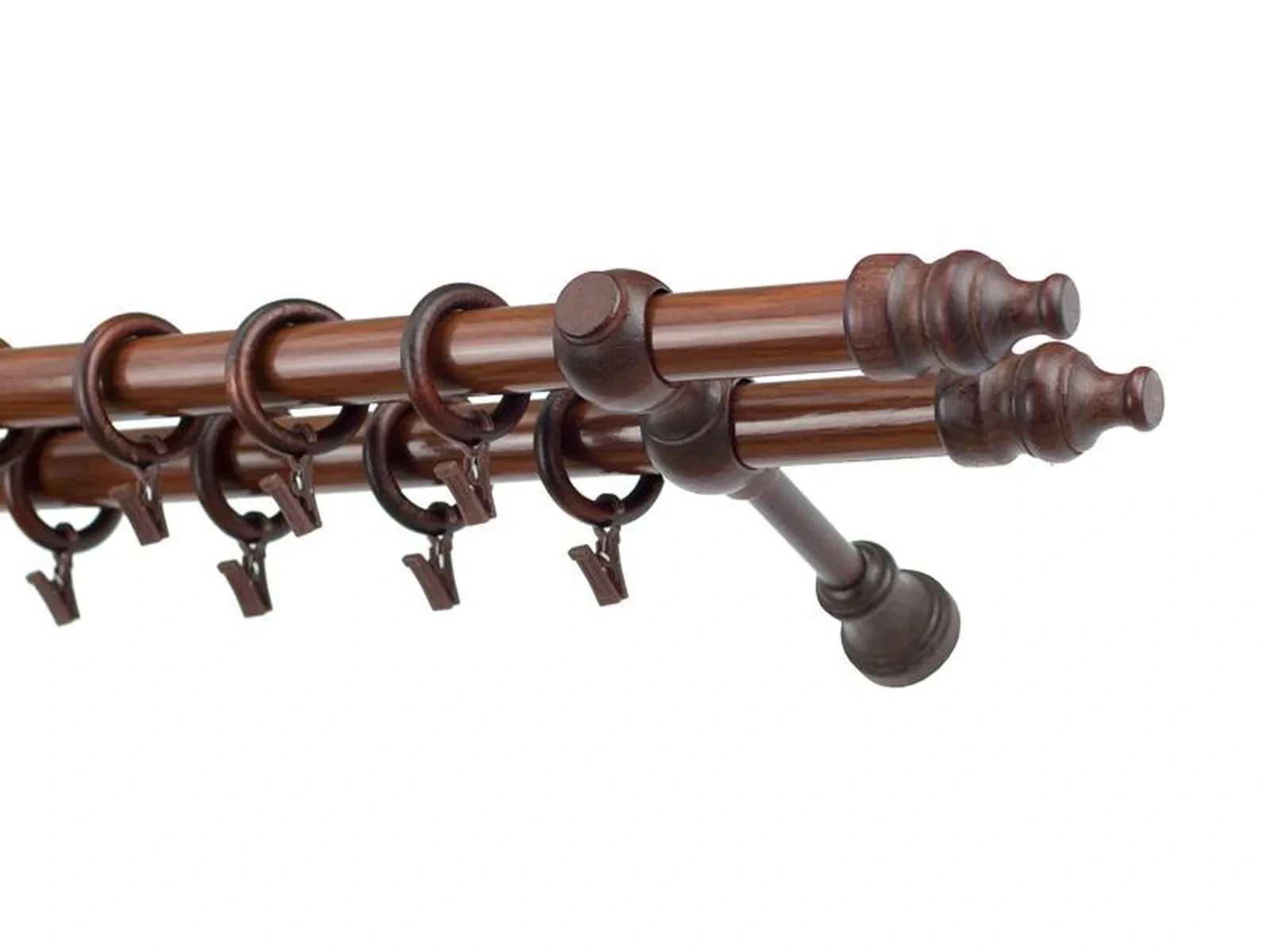 Koncovky, držáky a kroužky jsou dřěvené. Tyč je dřěvená (vyráběná technológii jako europrofily pro okna - co eliminuje ohýbaní vplyvem tepla) a je potažena odolnou dřevoimitační fólií. Dodávané jsou v kompletech.