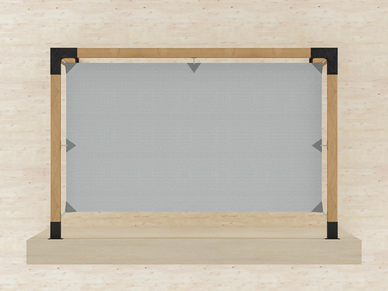 - Podle roztažené plachty v místech upínacích přezek na plachtě přišroubujte na hranol přímé upínače plachty.