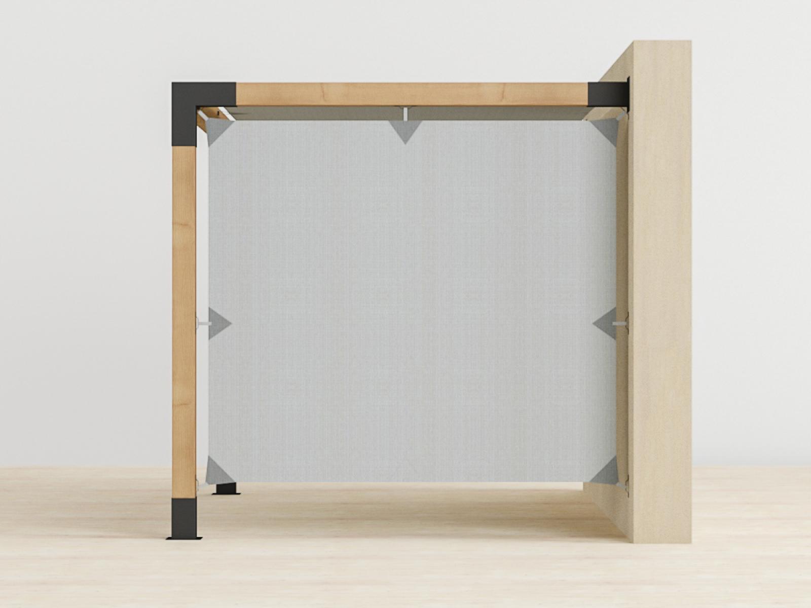 - Podle roztažené plachty v místech upínacích přezek na plachtě přišroubujte na hranol přímé upínače plachty.