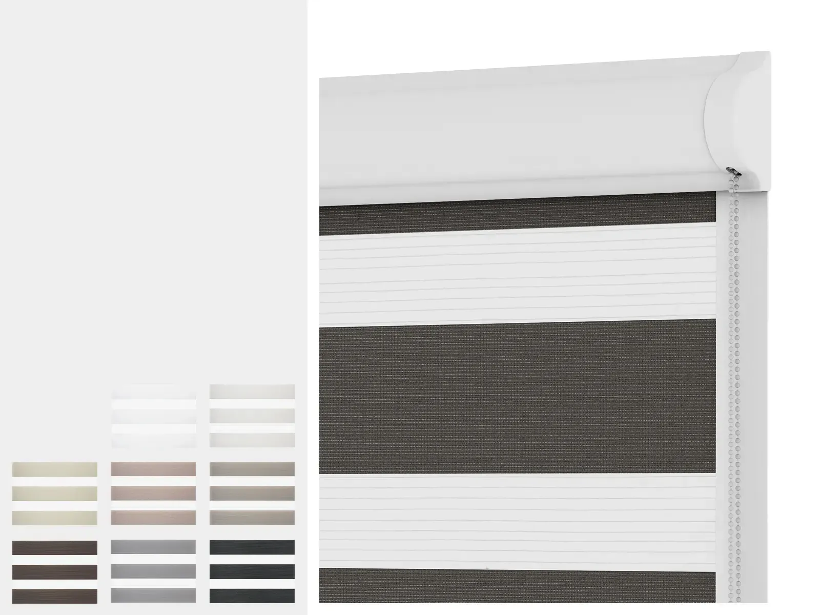 Při roletách swing s látkou den a noc garantujeme kompletní navinutí látky do bubnu do výšky 1800mm. Nad tuto výšku se tlustší látky nemusí kompletně do bubnu navinout a zůstávají tak volně viset. Neomezuje to funkčnost rolety.