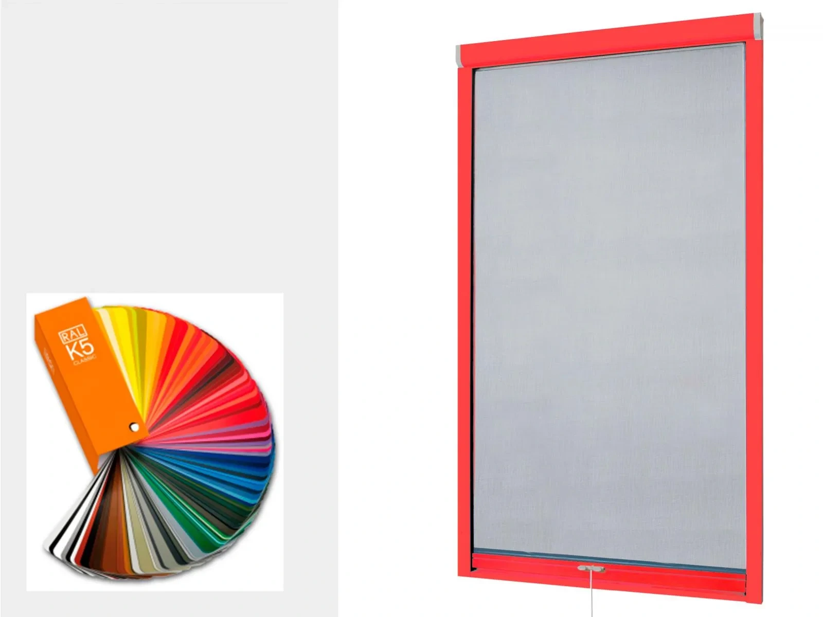 Sítě proti hmyzu - rolovací na OKNO - v barvě RAL jsou dodatečně povrchově upravovány práškovým lakováním podle mezinárodního vzorníku barev RAL. Ve zvolené barvě jsou dodávány hliníkové profily a uchytávací zvrtlíky. Více o barvách RAL naleznete zde.