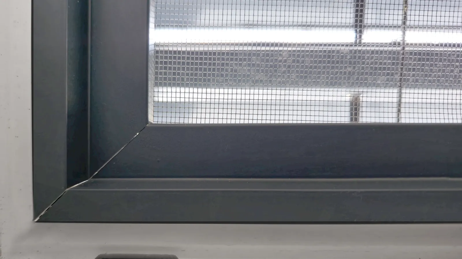 Sítě proti hmyzu na OKNO - pevné KLIK se odlišují od modelu LUX v tom, že rohový spojovač je plastový a viditelný. Profily jsou řezané pod 90° úhlem.