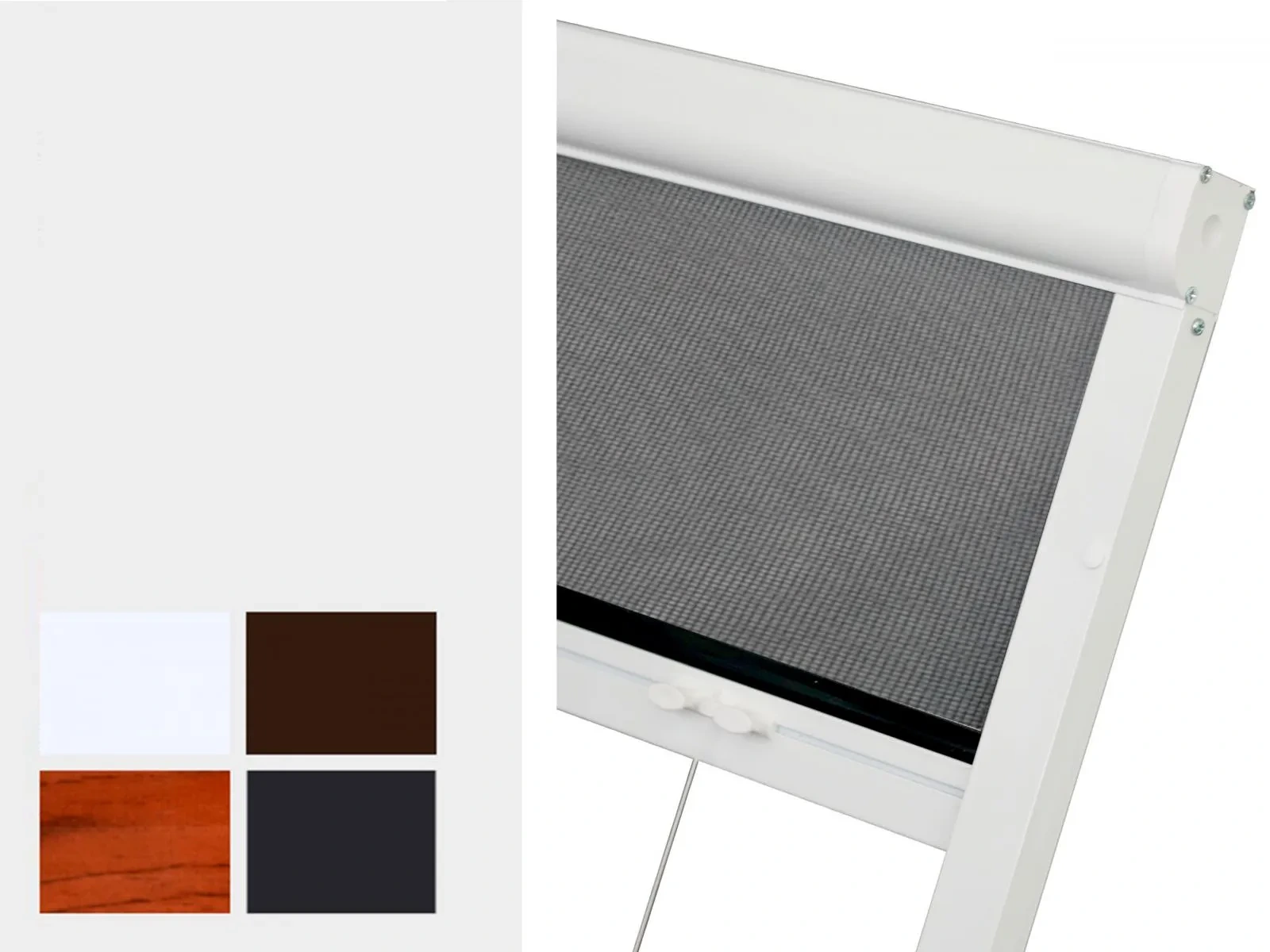 - Černá - standardní černá síťovina. Rozdíl oproti šedé je jen v barvě. Propouští stejné množství světla a brání hmyzu před vstupem do Vašeho domova. Černou síťovinu doporučujeme při tmavších barvách profilů (tmavohnědá, antracit, tmavší odstíny drevoimitácie).